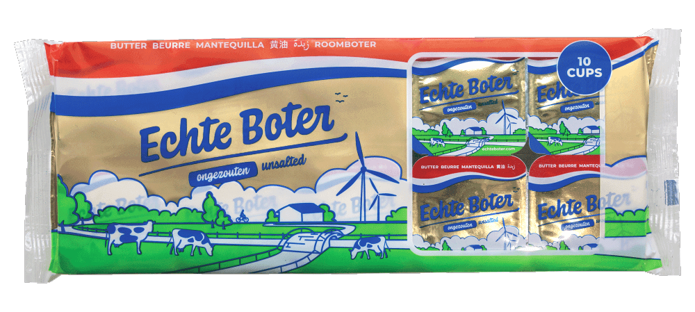 Ons Echte Boter cupje, bekend van de horeca, is inmiddels ook een vertrouwd product in het koelvak van de supermarkt. Het cupje is verpakt per 10 stuks en daarmee uitermate geschikt voor kleine huishoudens. Maar natuurlijk ook voor bij een feestelijk ontbijt of in de picknickmand!
